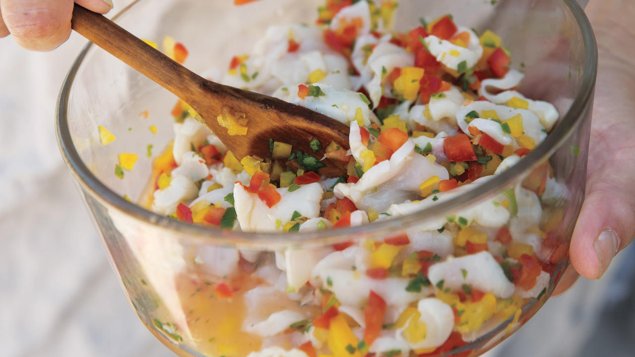 Ceviche cu ghimbir , lămâie și scoici scallpop
