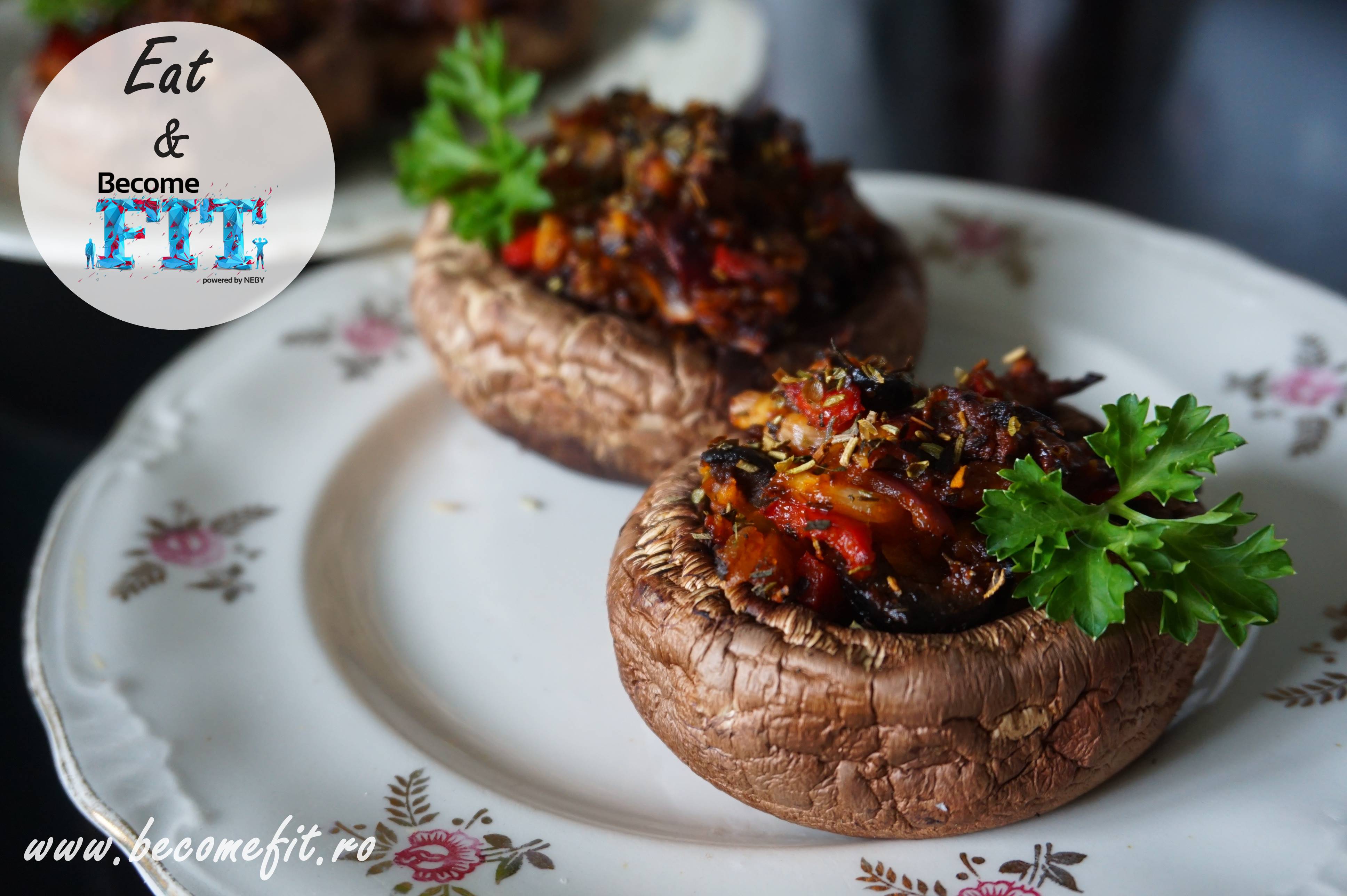 - – scoti ciupercile dupa ce au capatat o culoare maronie si cu lingura asezi legumele maruntite in cochiliile ciupercilor
