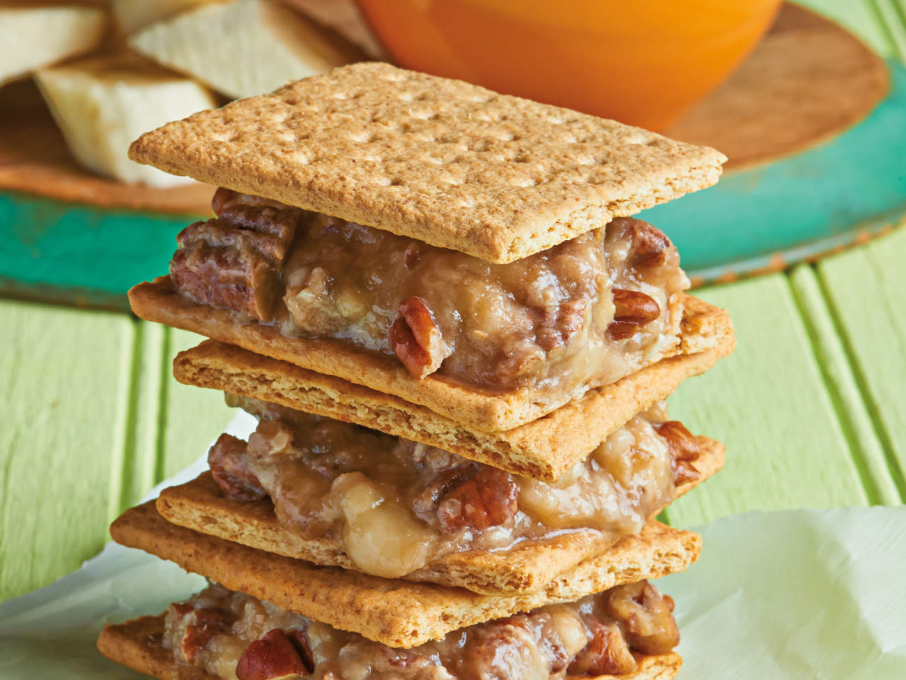 -cu o lingură turnați mixul de banană și nuci deasupra fiecărui crackers și puneți un crackers deasupra mixului . Înfășurați fiecare sandviș în folie de aluminiu și băgați-i la congelator timp de 2 ore și când sunt gata pot fi servite.