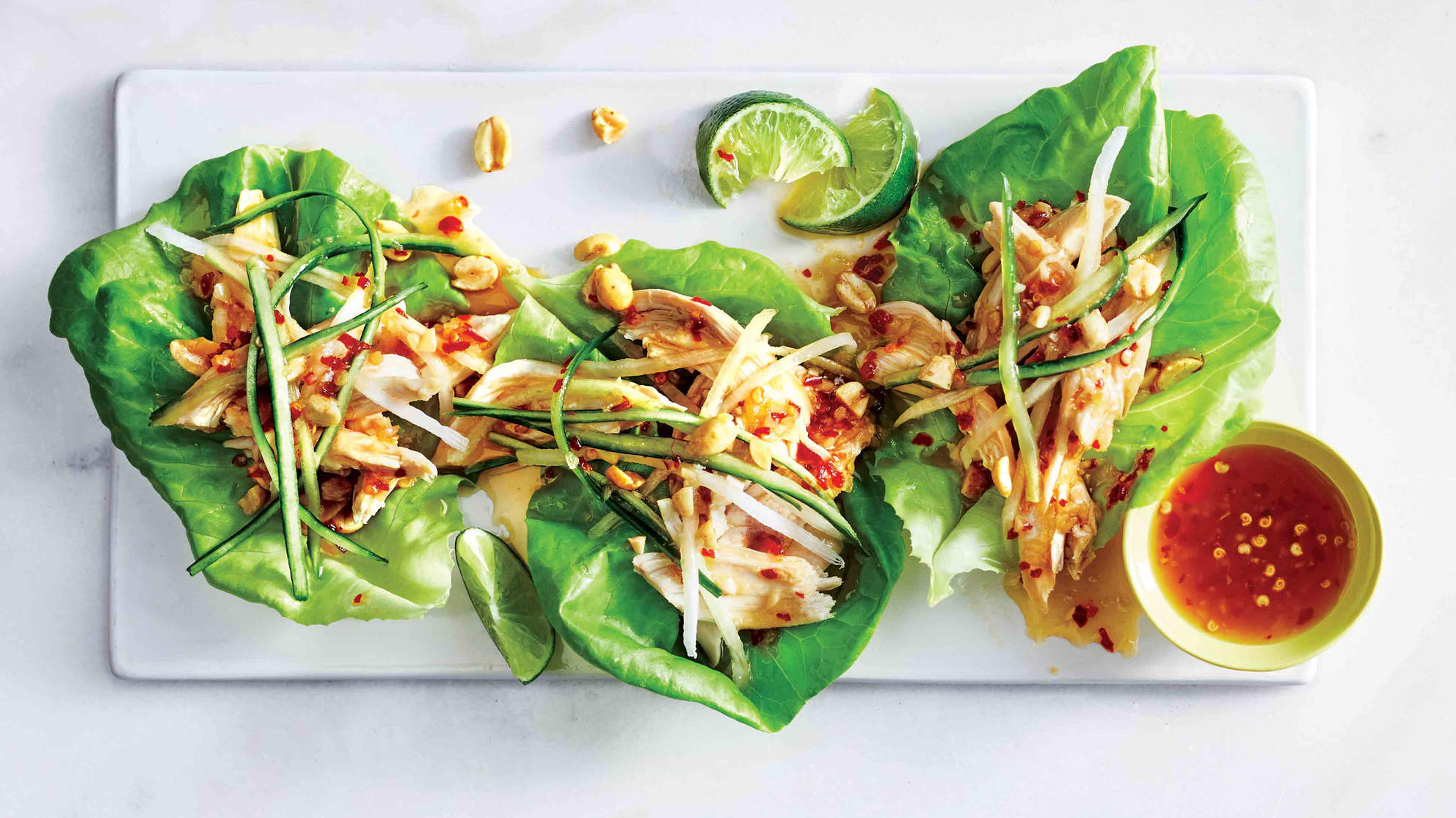 -divizați pieptul de pui pentru 8 foi de varză alături de mixul pregătit. Opțional , puteți pune pe deasupra câteva felii de castravete și alune.