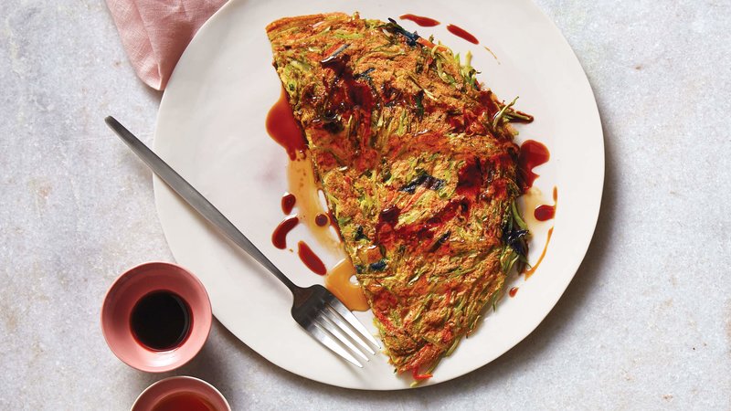 -într-un bol bateți 4 ouă în care veți adăuga : 1 linguriță de piper și 2 linguri de sos de soia . Turnați amestecul în tigaia cu broccoli. Lăsați la foc mediu timp de 2-3 minute pe o parte și întoarceți omleta pe cealaltă parte.