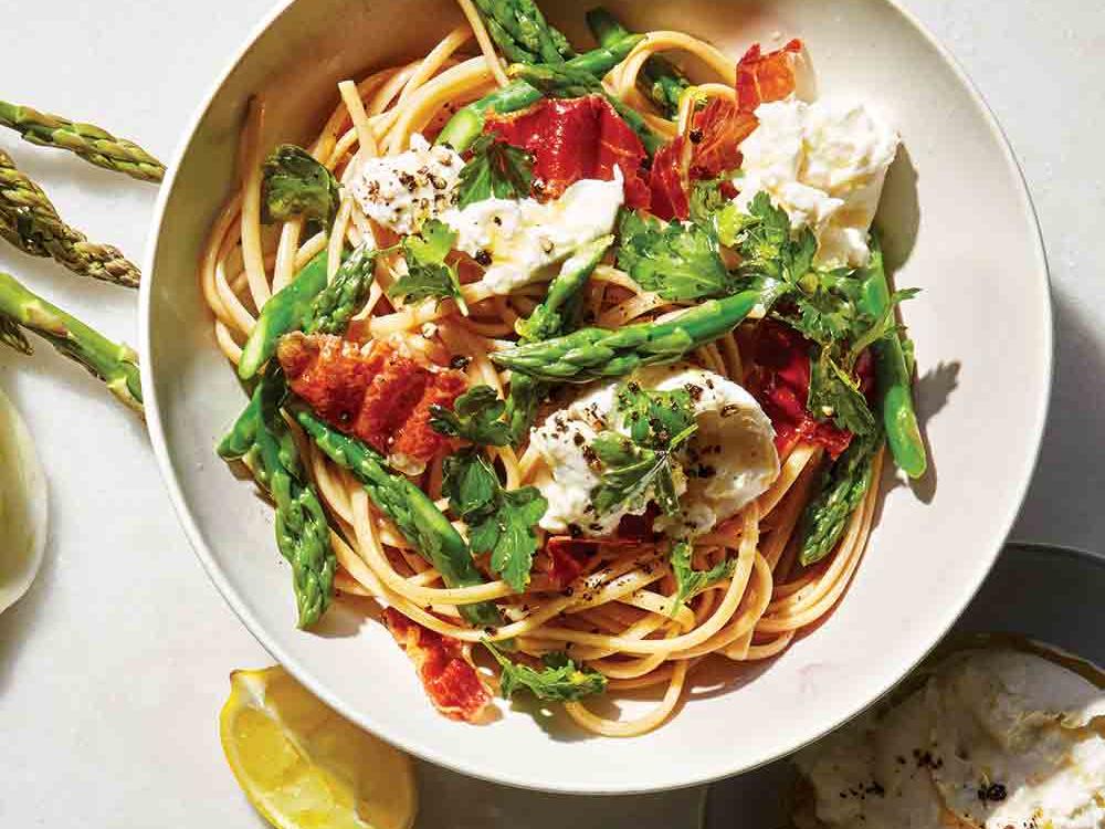 Paste cu sparanghel , prosciutto și mozzarella