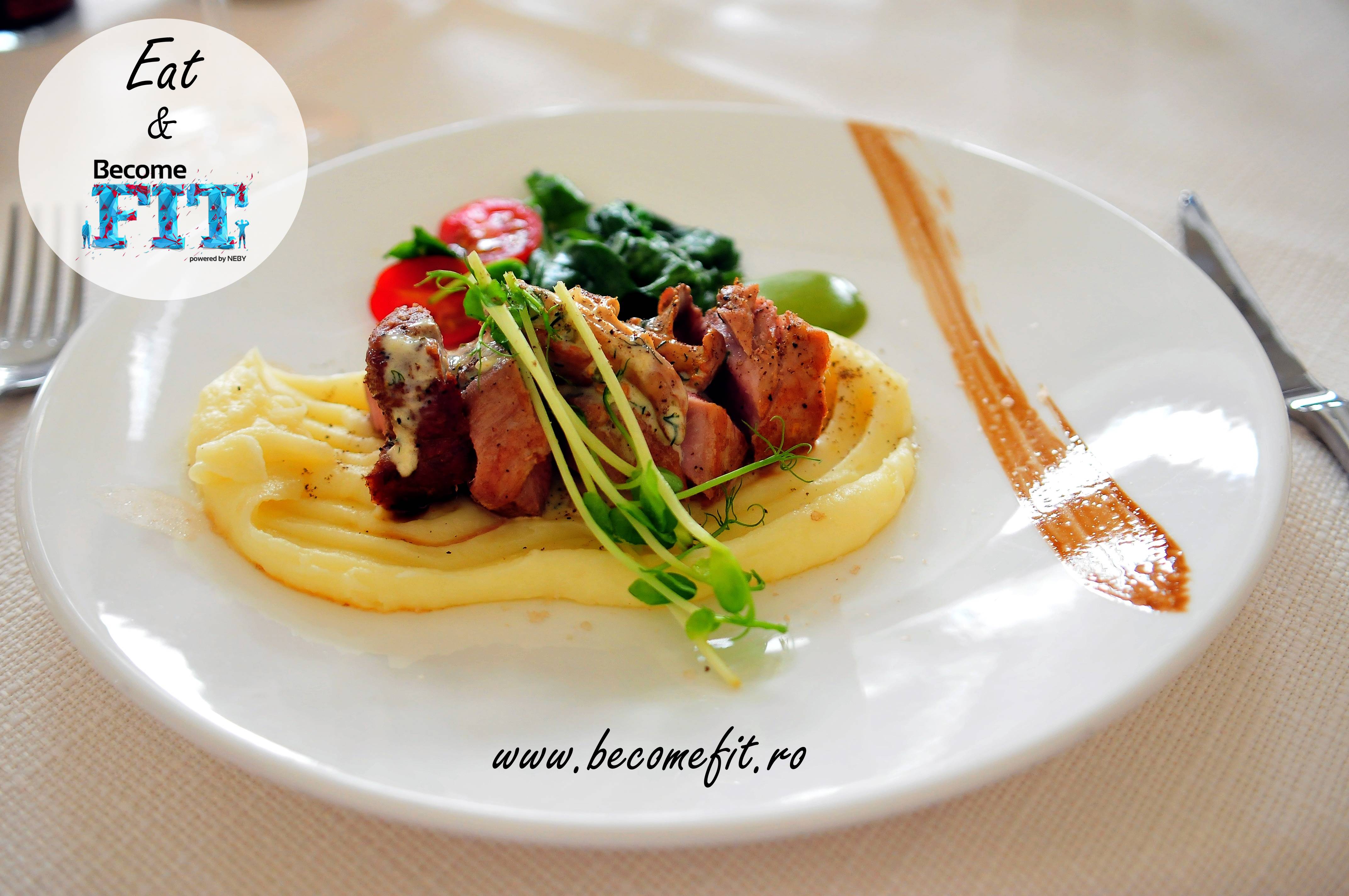 Pranz bun si gustos recomandat in zile cu antrenament. Stiu te vei intreba „Cum, carne si cartofi in aceeasi farfurie?”. Da, daca te uiti la cantitatea fiecarui preparat, vei intelege de ce am facut aceasta asociere.